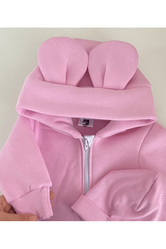 COMBI-PILOTE "BUNNY" AVEC CAPUCHE EN TISSU POUDRE DOUBLÉ DE POLAIRE 80-98